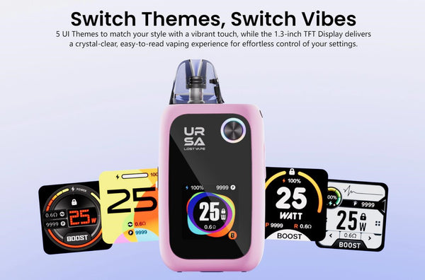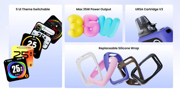 The Lost Vape Ursa Epoch Pro is a premium evolution of the original Ursa Epoch, now designed for vapers who want more power and personalization. Equipped with a robust 1400mAh rechargeable battery and up to 35W output, this pod system endures longer sessions while delivering rich flavor. The kit supports a new 2.5ml pod compatible with URSA Cartridge (V1/V2/V3) and a vibrant 1.3inch TFT screen with customizable 5 UI themes to display real-time data—battery level, wattage, puff count, coil resistance, and more. Unlike its predecessor, Epoch Pro adds full wattage adjustability (1–35W) via a dedicated button and retains the same silicone-wrapped chassis for grip and protection. Whether you're into MTL or RDL vaping styles, Ursa Epoch Pro blends style, versatility, and advanced tech in one sleek package.