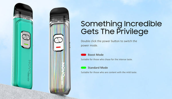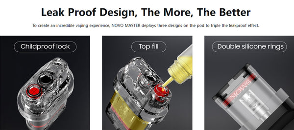 The Smok Novo Master Kit is a small and flexible vaping solution made for a great experience. This kit has a 1000mAh battery built in, and 30W max, so it lasts a long time. Two modes are designed to fit your different needs: Boost Mode (suitable for those who chase for the intense taste), Standard Mode (suitable for those who are content with the mild taste). There are two ways to vape: Button triggered, Auto draw. LED indicator design shows you the real-time battery power. In addition, Smok Novo Master Kit comes with the functions of childproof lock, top filling system, leak-proof design and stepless airflow control. Smok Novo Master is compatible with Novo/Novo 2/Novo 2X pods.