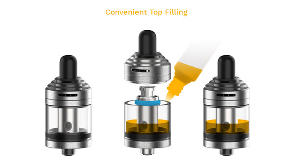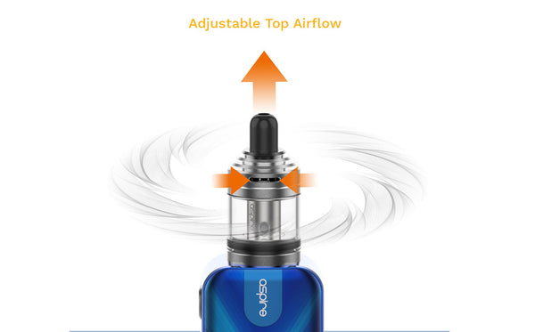 Adjustable airflow system is on the top of the Nautilus XS tank; 2 big airflow ports meet different airflow demands, with large diameter knurled adjustment ring for quick and precise adjustments.