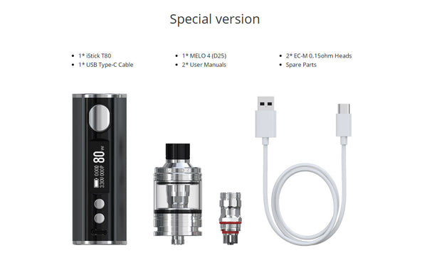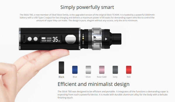 Eleaf iStick T80 Kit consists of the iStick T80 Battery and a Pesso atomizer. It is powered by built-in 3000mAh battery, which can fire up to the max output of...