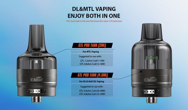 Eleaf iStick T80 with GTL Pod Tank Kit consists of a iStick T80 Mod and a GTL Pod Tank. iStick T80 Mod has 3000mAh built-in battery capacity and 1-80W power range. It also features the USB-C charging to delivery fast and stable power. The GTL Pod Tank is designed with 510-threaded base, so it can work with most 510-threaded devices. With dual sides airflow control, it will ensure free adjustments between maximum and extreme restricted air inflow. GTL Pod Tank 4.5ml Version is best for DL & Half-DL vaping and is compatible with GTL 0.4ohm/0.8ohm perfectly. The magnetic connection design makes the tank easier.