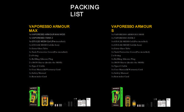 Vaporesso Armour Max and Armour S are the new dual/single 21700 box kit for advanced DTL vapers. Crafted entirely from TPU material, Armour envelops your tank and mod, ensuring comprehensive...