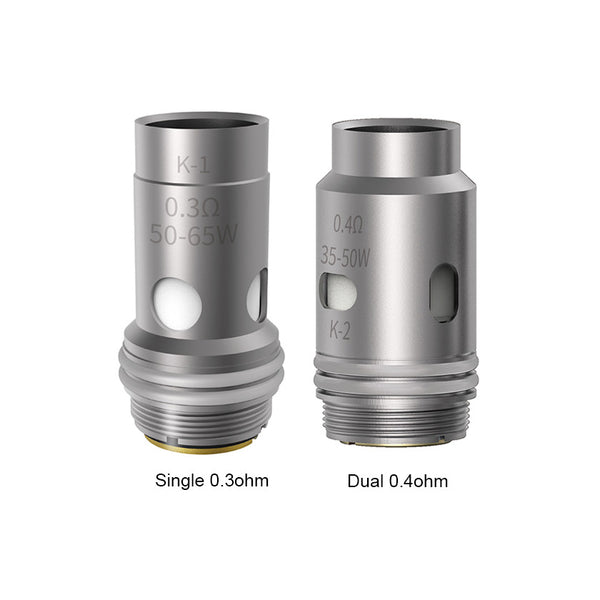 Knight 80 0.4ohm dual mesh coil (best 35-50W) K3 Half -DTL Mesh 0.6ohm (best 20-25W)