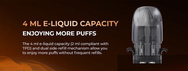 Pod Capacity: 4.0ml (2ml for each chamber)
