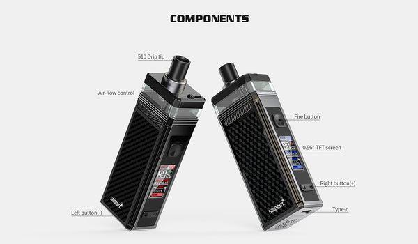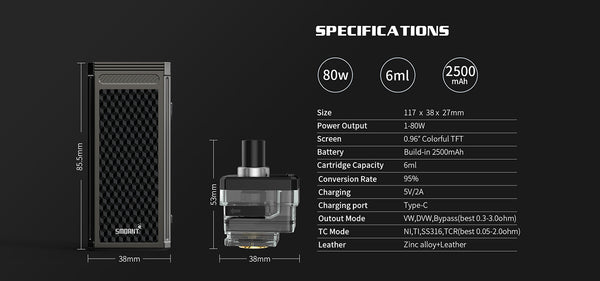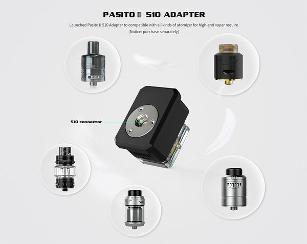 Smoant Pasito II Kit is a pod mod system kit that features elegant appearance, compact size and comfortable grip. It consists of a 6ml pod cartridge and a 2500mAh mod. Both of them are large enough to provide you with a long-lasting vaping experience. As for the cartridge, it features a big visible window to show you juice level clearly. And it adopts independent top air inflow system and side refilling slot to avoid leakage. In addition, it utilizes Pasito II 510 Adapter to compatible with all kinds of atomizer for high-end vaper require. Moreover, it is compatible with all Pasito and Knight 80 Coils, and new designed K3 0.6ohm Half-DTL coil, allowing you to experience different vaping. And as for the mod, it can fire up to 80W max output power. Equipped with 0.96-inch TFT screen to display vaping data, it also comes with 5 different color themes for your option. Besides, there are 4 modes available: VW Mode, DVW Mode, Bypass Mode and TC Mode. Moreover, it is designed with Type-C port for fast and safe charging.