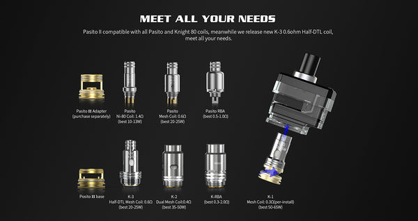6. Compatible with all Pasito and Knight 80 Coils, and new K3 0.6ohm Half-DTL coil
